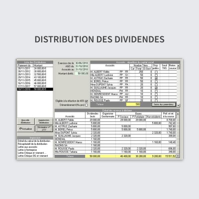 Calculez et répartissez automatiquement les dividendes entre les associés, y compris les prélèvements fiscaux et sociaux applicables.